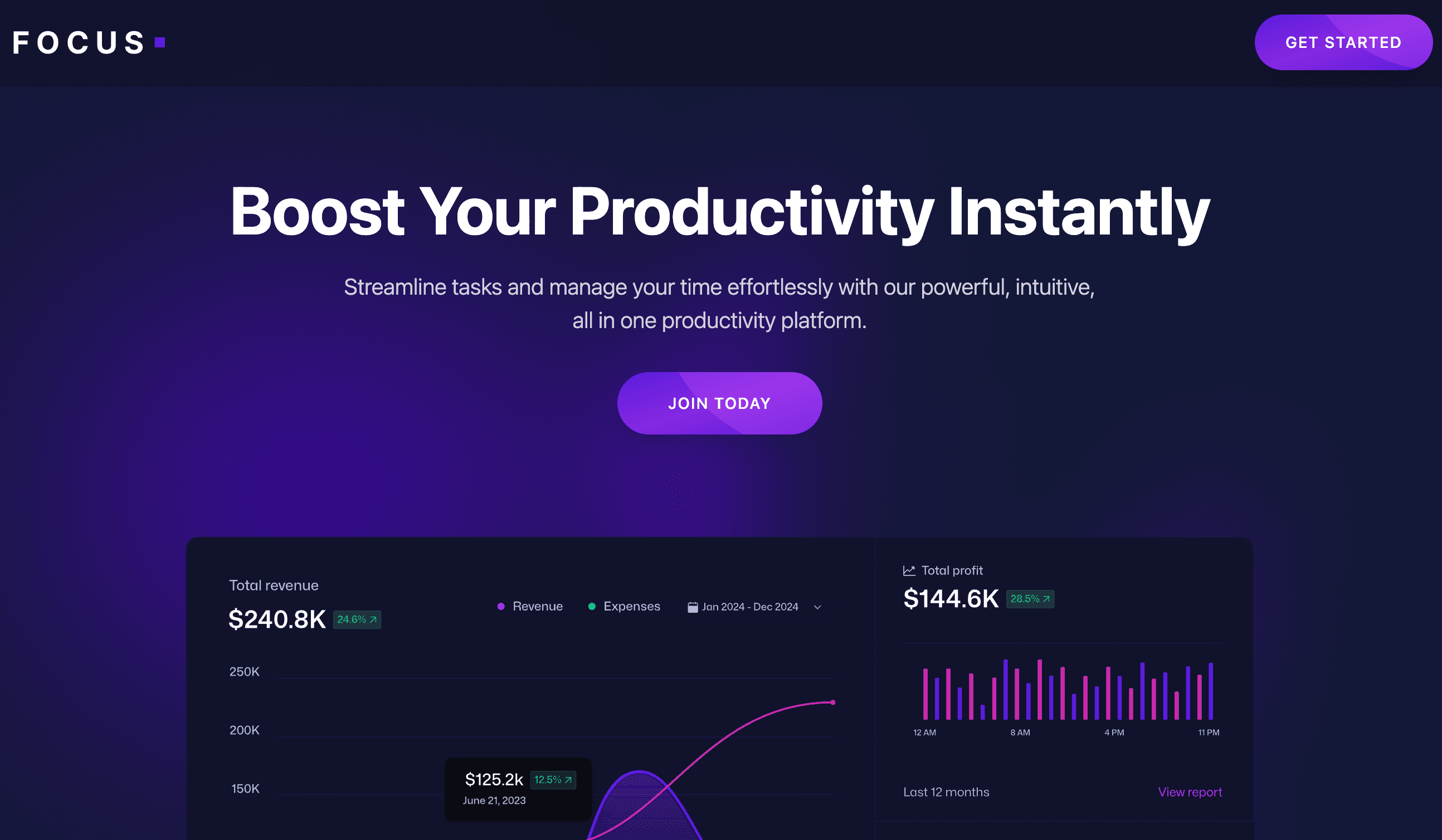 This landing page was created using HTML and JavaScript, with Tailwind CSS for a responsive design. Framer Motion provides smooth transitions, enhancing the user experience.